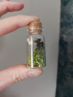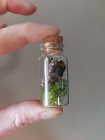 This delicate bottle garden houses a small bumble bee in a floral nature display - available with purple heather or gypsophila.