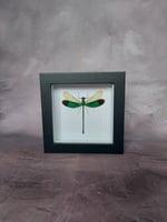Gorgeous damselfy (Neurobasis chinensis) set in 4" x 4" square box frame with white mount and glass front.
